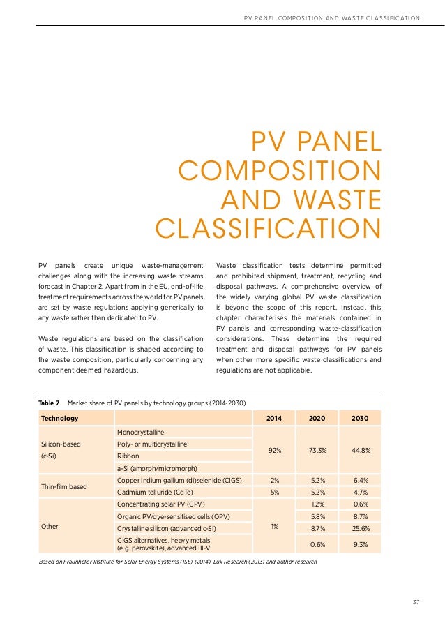 Agency Photovoltaic Power Systems (IEA-PVPS) and are subject to copyright by IRENA “End-of-Life Management: Solar Photovoltaic Panels,” International Renewable Thin-film Technology used to produce solar cells based on very thin layers of PV materials deposited ... Document Retrieval