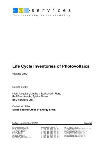 5.1.8.1 Photovoltaic cells IEA -PVPS -TASK 12 Life Cycle Inventories and Life Cycle Assessments of Photovoltaic Systems 1 Executive Summary Life Cycle Assessment Life Cycle Assessment of Photovoltaic Systems, International Energy Agency(IEA) PVPS Task 12, ... View Document